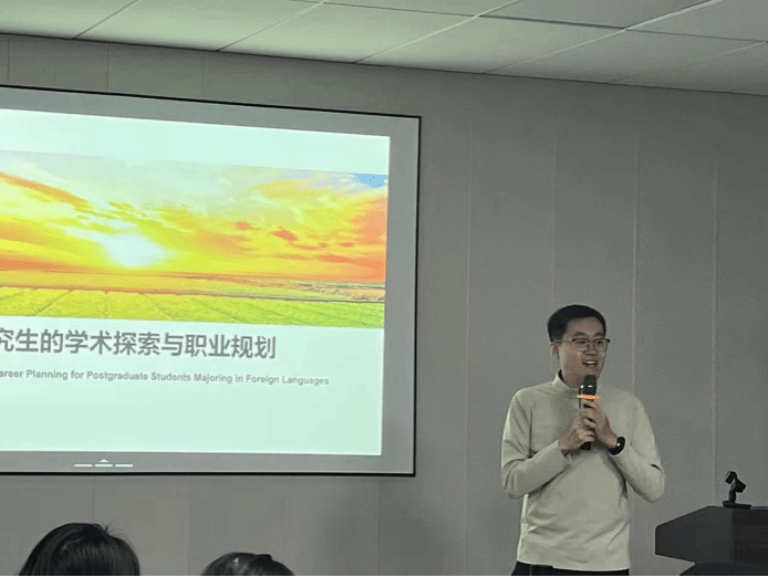 2025年12月5日上午,华中农业大学外国语学院英语系讲师,英语语言文学博士周尧老师做客学校研究生科技创新月活动,为我院研究生带来一场主题为“外语专业研究生的学术探索与职业规划”的精彩讲座。讲座旨在帮助同学们明晰研究生阶段的定位,破解学术困惑,并前瞻性地规划未来职业发展路径。