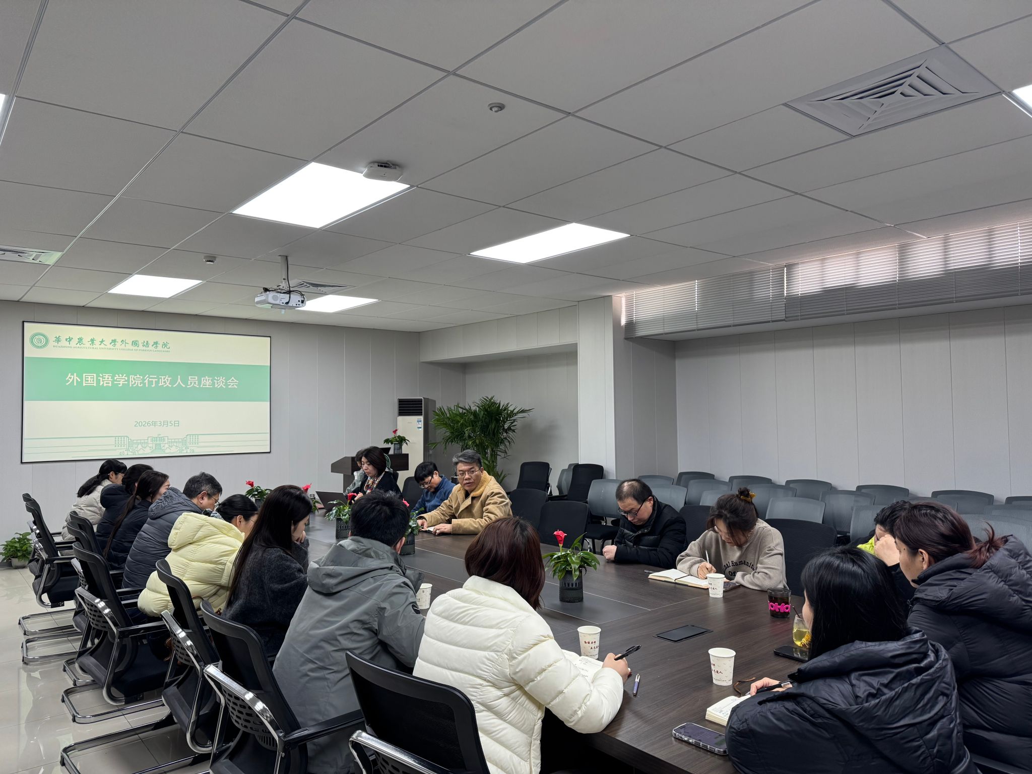 为全面提升党政管理队伍综合素质与服务效能,3月5日下午,外国语学院在人文楼附楼A102会议室召开行政人员座谈会。党委书记冯国林、党委副书记任丹、副院长秦发兰出席会议,学院办公室、学生工作办公室、教学管理办公室、语言实验教学中心全体工作人员参加座谈。